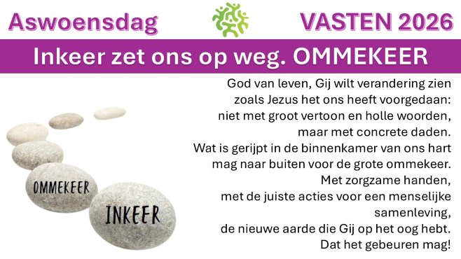 Al wie gelovig in het leven wil staan, wordt jaarlijks uitgenodigd om veertig dagen lang toe te leven naar Pasen. Deze veertigdagentijd wil voor jong en oud een sterke tijd zijn; een tijd om ons te herbronnen en het geloof van ons doopsel te verdiepen. Het is op Aswoensdag – 18 februari 2026 – dat wij aan onze tocht naar Pasen beginnen. Jij gaat toch ook mee?! Lees verder
